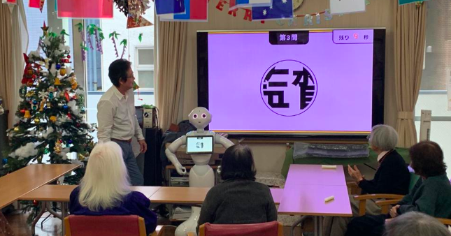 东京的银翼养老院里,一个名为 Pepper 的人形机器人,正跟二十多名老人玩猜字游戏。