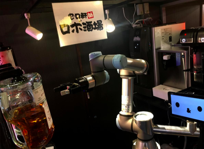 ▲ 日本 QBIT Robotics 公司的酒保机器人可以 40 秒内倒入啤酒,一分钟内混合鸡尾酒,它还有四个摄像头可观察客户,内置的 AI 能分析人类表情