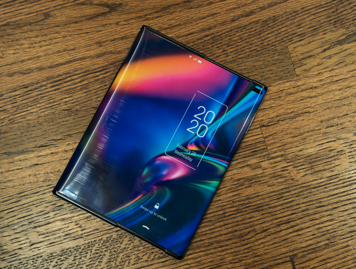不同于华为 Mate Xs 和三星的 Galaxy Fold 对折设计,TCL 的双折手机可以对折两次,从侧面看上去,类似 Z 字形对折。