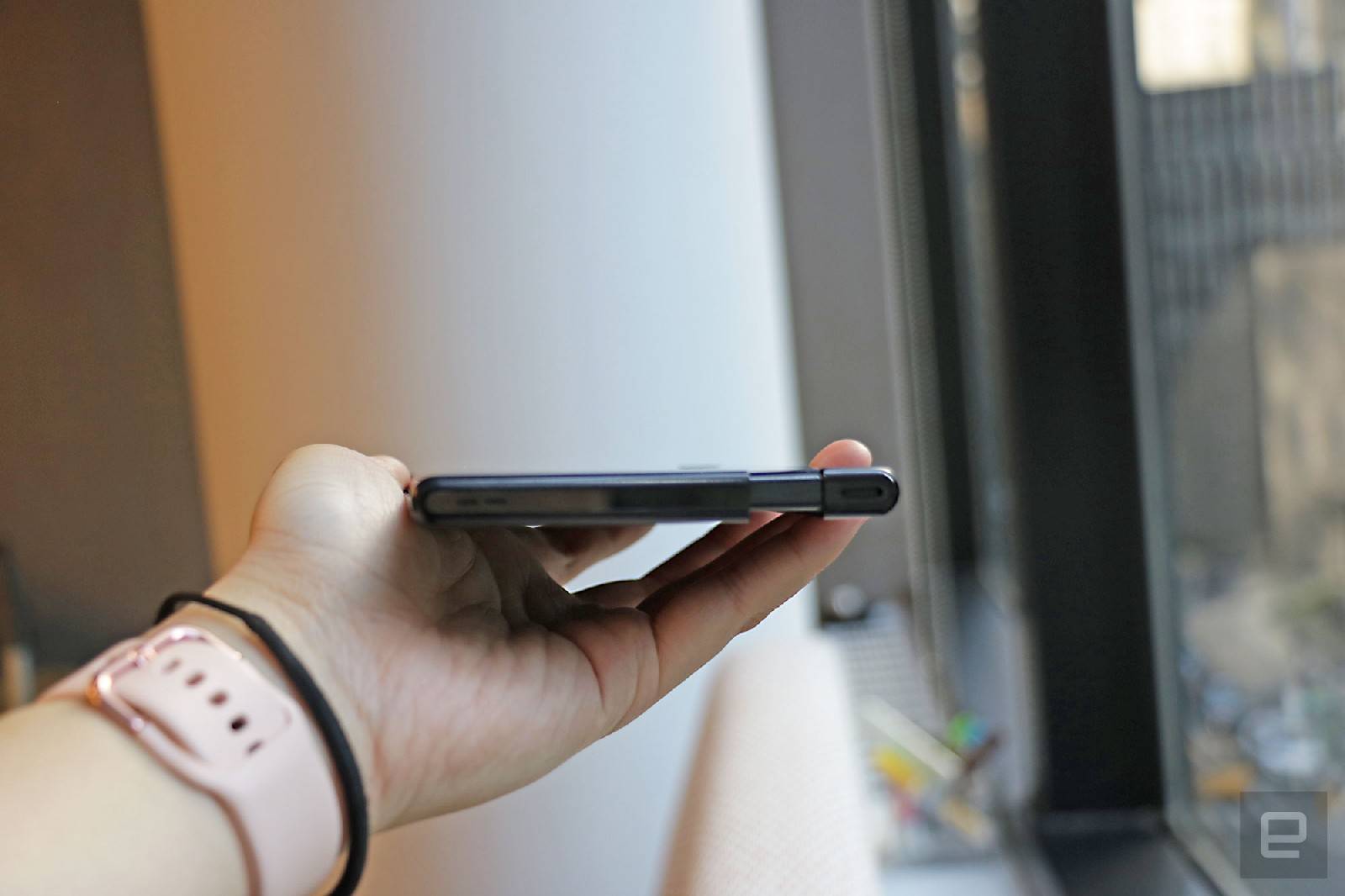 当手机完全展开时,用户能看到一块 10 英寸的屏幕,大小接近 iPad ,屏幕分辨率为 3K 。完全折叠时,屏幕就会变回正常手机的 6.65 英寸,屏幕比例为 20.8:9。当然,厚度也就变成了展开时的 3 倍,手感有点类似功能机。